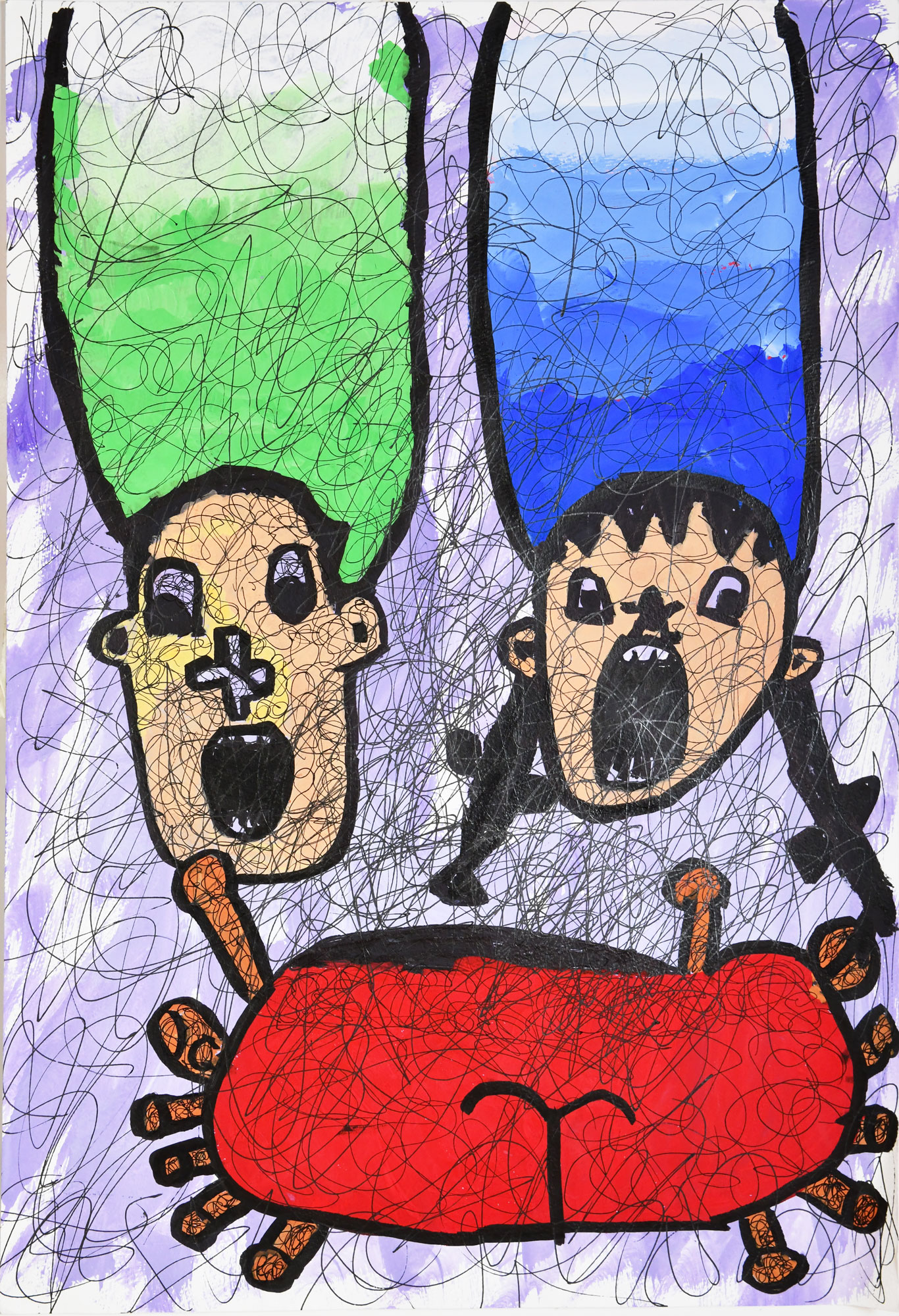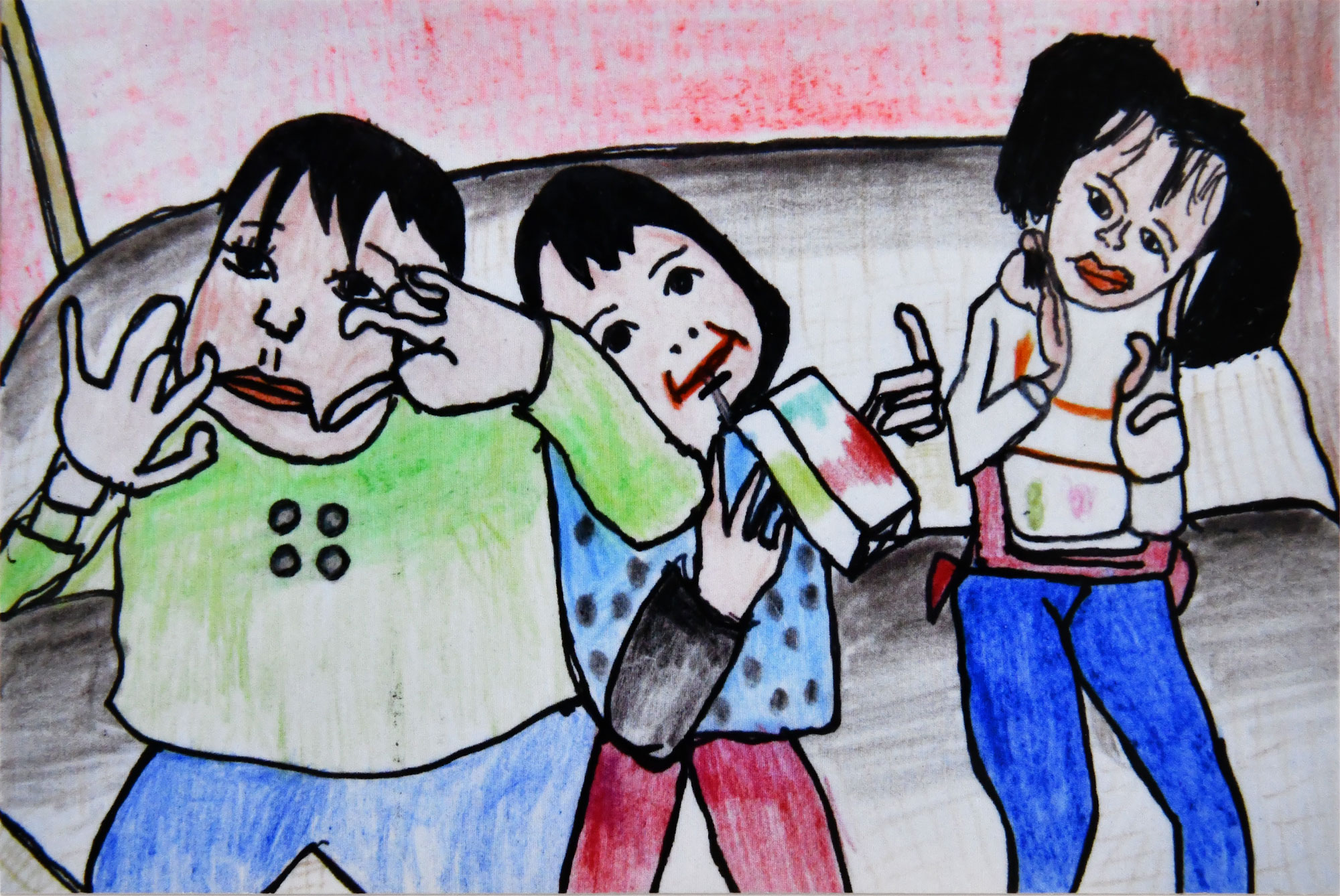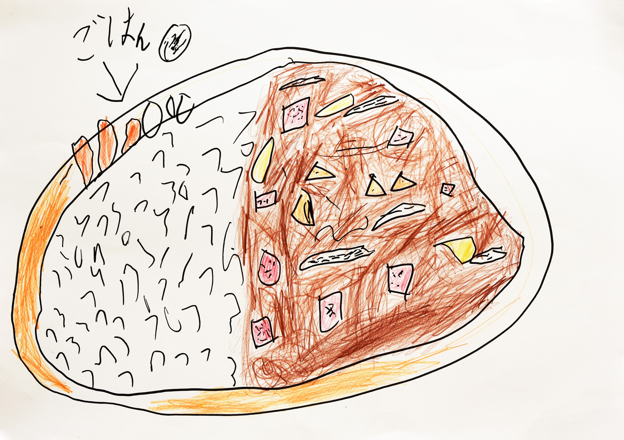 アメリカの分断を表しています。食事の時間は仲良くして欲しいという気持ちで描きました。