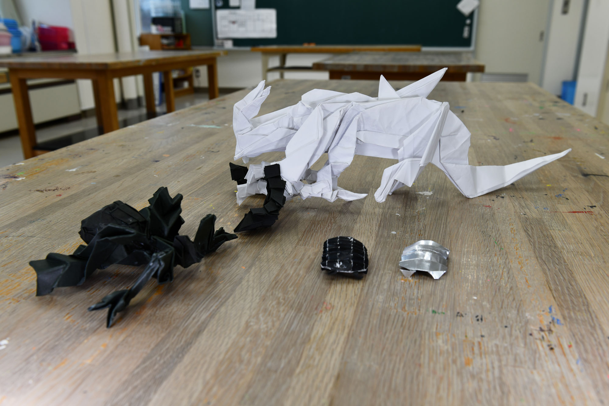 廃棄されていく物をどうにか生まれ変わらせたいという挑戦です。段ボールの素材を生かしました。